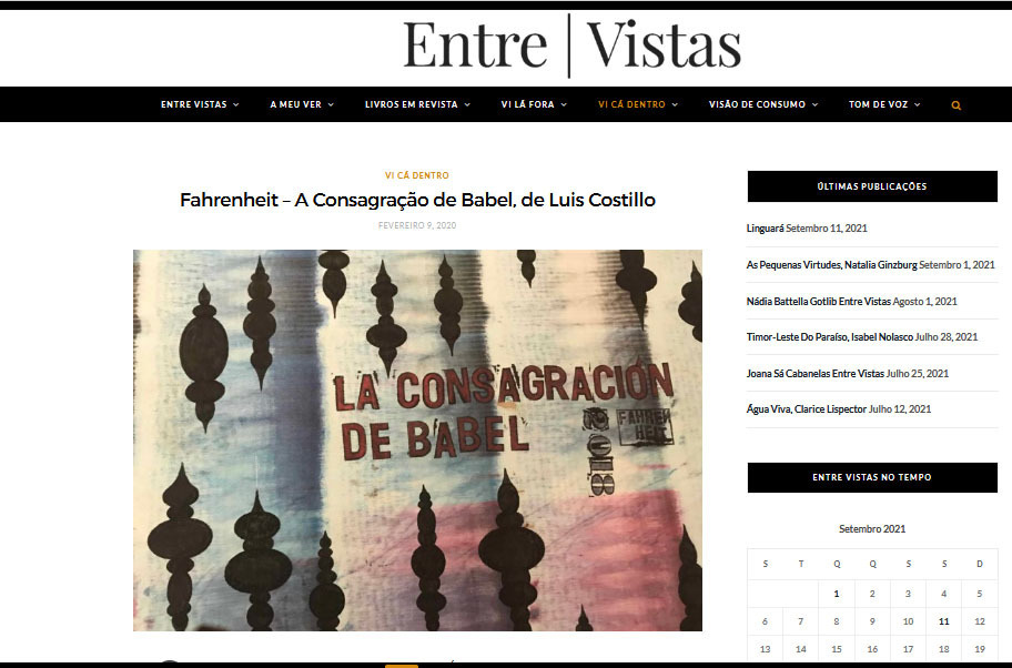 Noticia de la revista digital «Entre-vistas» sobre la exposición en Fundaçao Eugénio de Almeida.